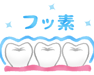 〇歯質の強化(再石灰化の促進):歯の表面のエナメル質に取り込まれ、歯を酸に溶けにくい強い性質に変えます。
